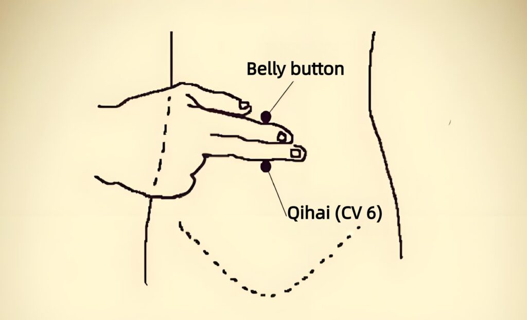 Light moxa sticks and moxibustion gently for 15 to 20 minutes. Moxibustion at Qihai points can replenish the center of the body, astringe the essence and stop the loss of blood, and relieve lumbar muscle strain.